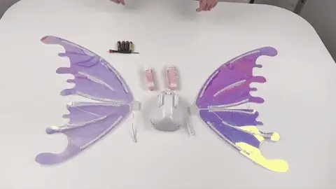 The wings feature beautiful, colorful lights that make them stand out in the dark.